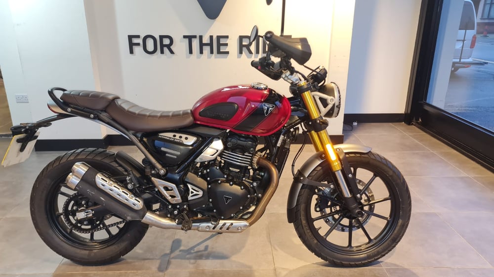 Triumph East London are pleased to bring you this Scrambler 400 x finished in Carnival Red / Phantom Black.