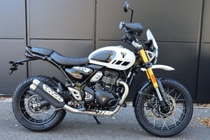 Brand New Scrambler 400 XC in Vanilla White, the all new Scrambler 400 XC features the T Series engine and delivers 39.5 BHP coupled with an impressive 37.5 Nm Torque, 19" front and a 17" rear, this ride is built tough, Seat height is 835mm with a narrow frame so you are in a commanding position in traffic and it is super manoeuvrable with wide bars, the bike not only looks the part, it can do the business too . All new Triumphs come with a comprehensive two year manufacturer warranty, you can choose to upgrade to three or four years too, price is on the road including first registration fee and road fund licence, your new bike will have a full PDI by one our factory trained Technicians to ensure you can enjoy your new ride with confidence. We offer Nationwide delivery and Part Exchanges are very welcome, we will do our upmost to secure the best price through our eight LIND bike dealerships or traders. Our Parts, Accessories and Clothing Departments are fully stocked with the very latest Triumph gear, so pop in and have a chat to our Aftersales Team, who can help make your ride more enjoyable. Easy to find, we are 10 minutes off M1 junction 5 Watford, Open 5 days Tuesday through Saturday, plenty of parking. For those using W3W find us at leaves.enjoyable.tiger Call us on 01923 588730 and ask for our sales team or visit lind.co.uk/triumph. We have the largest selection of Triumphs in the UK as we can source through our other three LIND Triumph dealerships, so if you are looking for a specific model, call us and we will do our best to source for you, see our other adverts for Bonneville, Thruxton, T100, T120, Bobber, Scrambler, 400, 400X, Rocket 3 GT, Roadster, Street, Speed, Triple, R, RS, RX, Tiger, Sport, 660, 600, 675, 765, 800, 900, 1200, XE, XC, Speedmaster, Daytona, Moto2, Speed Twin, Trident